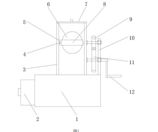 一种手摇式球形土壤筛分器,包括分离装置、圆桶结构、球形筛和摇把结构,所述圆桶结构上方安装有密封盖,且圆桶结构下方螺接在分离装置上,所述固定圈主体侧面上位于圆桶结构外侧设置的固定轴上固定有从动齿轮,且固定轴末端固定在分离装置右侧设置的支撑柱上方,所述从动齿轮与下方设置的传动齿轮啮合在一起,且传动齿轮安装在穿过支撑柱的摇把结构上。该手摇式球形土壤筛分器,与手动震荡筛分相比,具有实用方便、节省操作时间和提高过筛效率等优点,同时采用双半球形的球筛网能够有效解决土壤颗粒堵塞筛孔的问题,转动过程中土壤颗粒会不断接触新的筛面,明显提高了过筛效率。